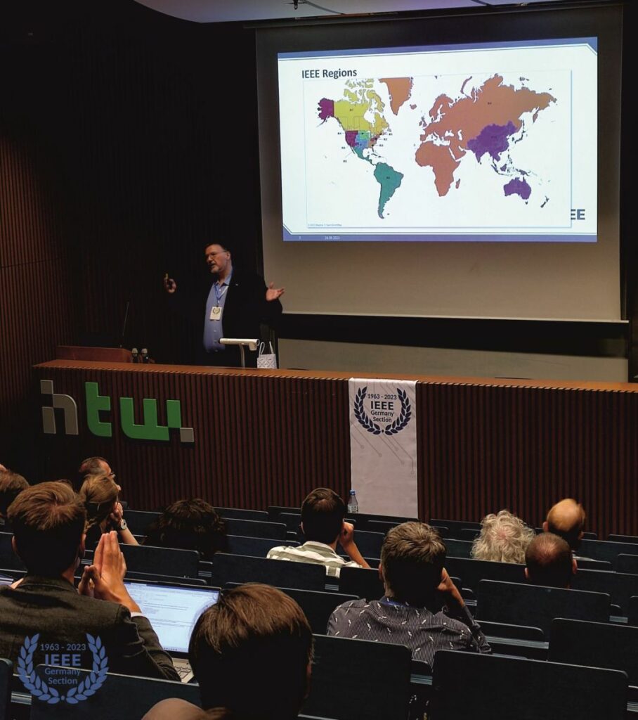 Neben einem historischen Rückblick auf die 60-jährige Geschichte der IEEE Germany Section durch den aktuelle Chairman, Prof. Dr. Jan Haase, wurde in der Vollversammlung der Mitglieder auch über die zukünftige Entwicklung der IEEE Germany Section und die damit verbundenen Herausforderungen intensiv diskutiert. Dabei standen insbesondere die Themen Mitgliederentwicklung und die Bekanntheit von IEEE innerhalb Deutschlands nicht nur als Anbieter von IEEE Xplore als digitale Bibliothek für wissenschaftliche Artikel sondern auch im Bereich der Standardisierung im Vordergrund. Hier sollen in Zukunft Studierende an den Hochschulen und Universitäten erheblich besser informiert werden, welche Vorteile und Möglichkeiten des professionellen Networkings und der aktiven Teilnahme an Veranstaltungen der einzelnen IEEE Chapters es in Deutschland gibt.