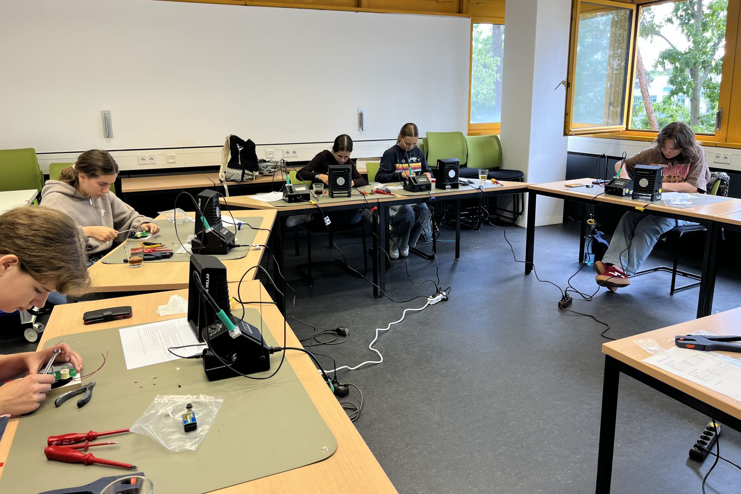 Vom 08.09.25 bis zum 12.09.25 fand das Mädchen und Technik Praktikum an der Technischen Fakultät der FAU statt. Hierbei bekommen Schülerinnen der 7.-12. Jahrgangsstufe einen Einblick in die Vielfalt der Berufe in Naturwissenschaft und Technik an der Universität. Auch der Lehrstuhl für Elektrische Energietechnik hat dieses Jahr wieder einen Versuch angeboten. Beim Bau eines „Ewigen Kreisels“ konnten die Schülerinnen erste Erfahrungen mit elektrischen Schaltungen und magnetischen Feldern sammeln sowie Neues über Elektromagnete, elektronische Bauteile und Batterien lernen. Am Ende konnte jede Teilnehmerin ihren selbst gelöteten Aufbau mit nach Hause nehmen.